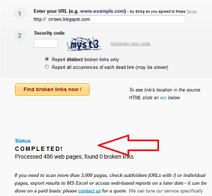 3. Silahkan tulis Security Code di kolom yang tersedia atau muncul. Setelah itu, silahkan klik tombol Find Broken Link Now!.