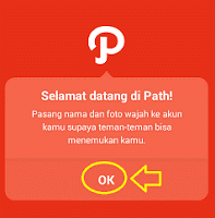 3). Kemudian akan muncul halaman baru disertai dengan tulisan ” Selamat datang di Path ” silahkan klik tuluisan ” Ok “