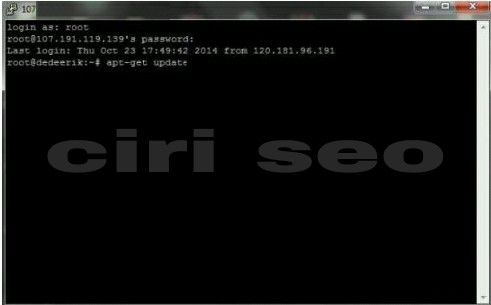 4). Setelah terbuka maka akan terlihat seperti sreenshot di bawah, di form ini anda bisa mengatur mengedit atau mengupdate dengan kode apt-get update ( debian ) dan untuk yang centos ada beri tulis kode perintah yum update.