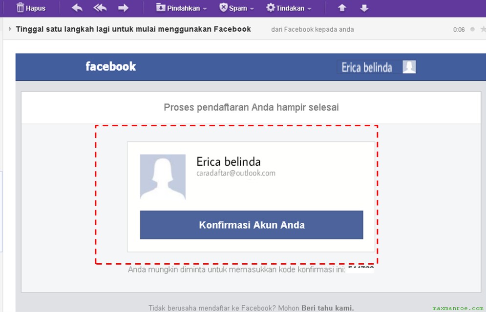 4). Silahkan buka inbox email Anda cari pengirim dari pihak facebook dan klik tulisan “Konfirmasi Akun Anda ” setelah menklik maka ada halaman facebook baru Anda, Nah sampai tahap ini Anda sudah memiliki akun facebook baru dan sukse dalam pendaftaran facebook, sekarang akun facebook Anda sudah aktif saat itu juga.