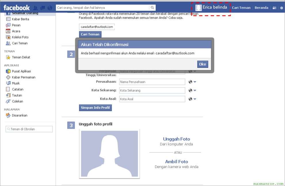 (3) Mengupload foto Anda harus yang asli kalau bisa agar ada teman yang mungkin kenal Anda pasti akwn mengikuti sebagai teman.