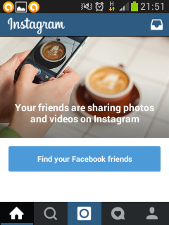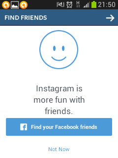 5). Selanjutnya akan ada halaman screenshot baru seperti di bawah dan kemudian Anda klik tulisan “ Fine your facebook friends ” untuk otomatis akun instagram dihubungkan langsung dengan facebook karena menurut berita instagram sudah di beli oleh facebook maka dua akun ini bisa saling berhubungan.