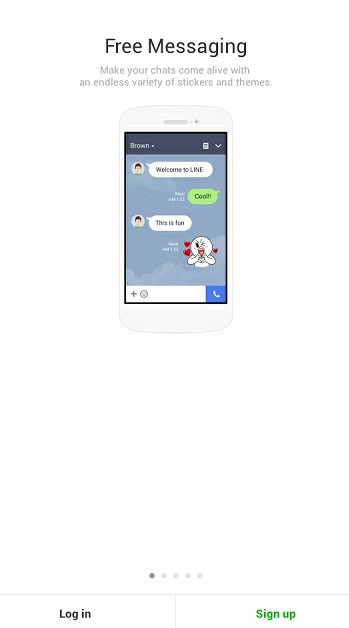 2). Selanjutnya buka aplikasi Line. Pada screenshot baru ada 5 slide unggulan Line untuk pertama-tama membuat akun ID LINE dan klik tulisan “ Sign Up “
