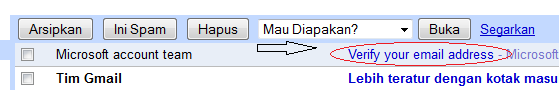 6). Nah selanjutnya cek email Anda yang di daftarkan di atas tadi, pesan dari tim microsoft ini ada link yang harus Anda klik untuk verifikasi.