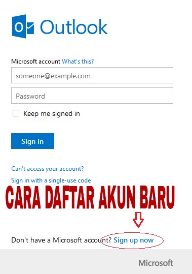 Melalui artikel ini Saya akan menjelaskan lankah-langkah cara daftar akun microsoft terbaru lengkap berikut panduannya berupa gambar screenshot. Cara daftar akun microsoft sebelumnya harus memiliki akun email yahoo dan email google Gmail dan email microsoft itu sendiri ( Email outlook langsung akses penuh ke akun microsoft). Apabila belum punya akun email di atas silahkan daftar dulu ditautan ini cara buat akun gmail, daftar email Yahoo dan cara buat email ooutlook.