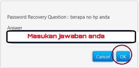 3). Kemudian untuk kotak “Answer” silahkan di ingat jawaban dulu yang di set pada pengaturan ini, setelah itu klik tulisan “Ok”.