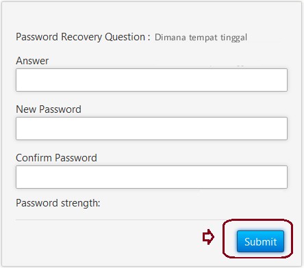 7). Pada langkah ini pihak BB meminta jawaban lagi seperti pada nonor 3 dan selanjutnya buat password baru di kolom “New password” atau sandi baru dan “Confirmasi password” lalu klik tulisan “Sumbit”.