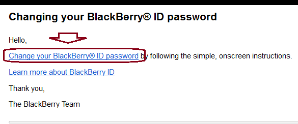 5). Selanjutnya secara sistem mengarahkan ke akun email Anda dan silahkan cek inbox email Anda, dalam pesan ada link yang harus anda klik dari pihak Rim blackberry.