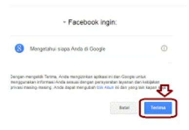 4). Kemudian sistem akan mengarahkan Anda ke akun google Anda silahkan “masuk” seperti biasa dan akan tersedia pesan seperti screenshot di bawah dan selanjutnya klik “Terima”.