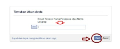2). Selanjutnya akan terbuka halaman “Temukan akun Anda” selanjunya isikan alamat email Anda, Nama pengguna atau nomor ponsel juga nama lengkap Anda yang bisa untuk login, dan kemudian klik kotak dengan tulisan “Cari”.