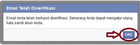 5). Sebagai tahap selanjutnya ada jendela baru sebagai “Email telah diverifikasi “dan kemudian klik tulisan “Ok”.