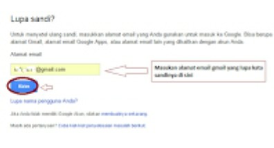 2). Kemudian akan terbuka halaman baru “Lupa Sandi” kemudian kotak yang tersedia isi dengan email google yang akan di pulihkan, kemudian Anda klik tulisan “Kirim”.
