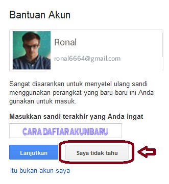 4). Maka akan terbuka jendela baru “Bantuan Akun” silahkan pilih tulisan “Saya tidak tahu”.