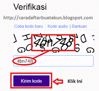 Setelah semua data Anda isikan pada form kolom di atas secara lengkap maka Anda lanjutkan dengan klik tombol yang bertuliskan “ Buat account ” dan Kirim Kode