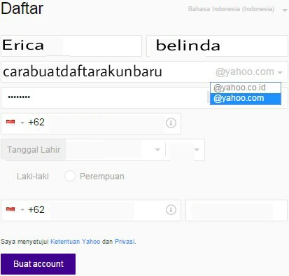 e• No Ponsel : Silahkan Anda masukan nomor ponsel Anda sebagai syarat pendaftaran karena nomor ini untui konfirmasi kode unik dari pihak Yahoo
