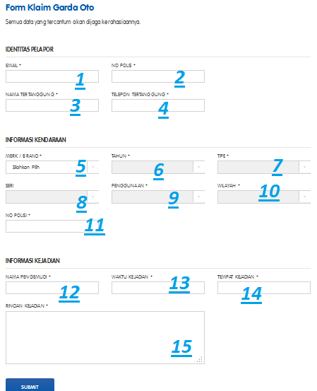 Formulir simulasi Klaim tujuan untuk meminimalisir kesalahan dan mengetahui cara klaim yang benar oleh pengaju klaim “anggota” asuransi Garda Oto.