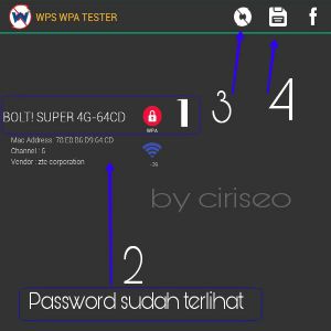 Sekarang Anda sudah tahu cara membuka password wifi melalui aplikasi di Hp Android ini dan kerja aplikasi ini menampilkan nama jaringan wifi dan passwordnya di sekitar Anda untuk masuk kejaringan wifi target tadi yang sudah di ada seperti gambar di atas cukup masuk ke pengaturan wifi perangkat Android Anda dan pastekan kode tersebut hasil dari aplikasi wps wpa tester.
