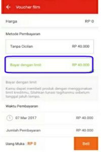 Pilih ada dua metode pembayaran yakni Tanpa cicilan dan Bayar dengan limit.