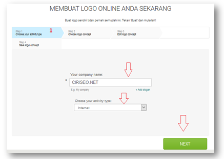 Selanjutnya Anda akan dihadapkan seperti halaman dibawah dan klik tombol dengan tulisan BUAT LOGO.
