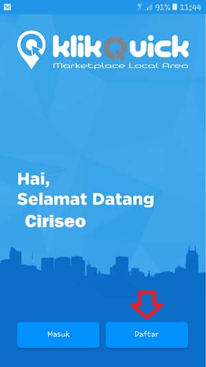 Setelah tadi diinstal, kemudian buka aplikasinya dan klik tulisan “Daftar”.