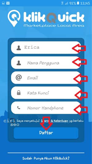 Setelah tadi klik tulisan daftar maka otomatis data anda telah dikirim ke KlikQuick. Pastikan Email dan nomor HP Anda aktif.