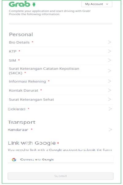 Syarat di atas sudah dipenuhi, untuk cara daftar Grab Surabaya maka selanjutnya Anda harus melengkapi dokumen penting data diri Anda, berikut datanya: